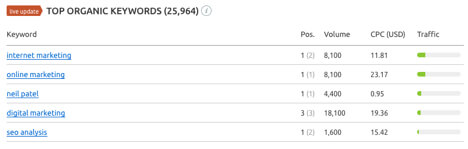 SEMRush also lets you see the top organic keywords of any domain. Again, use your competitor’s website to see which they are targeting.