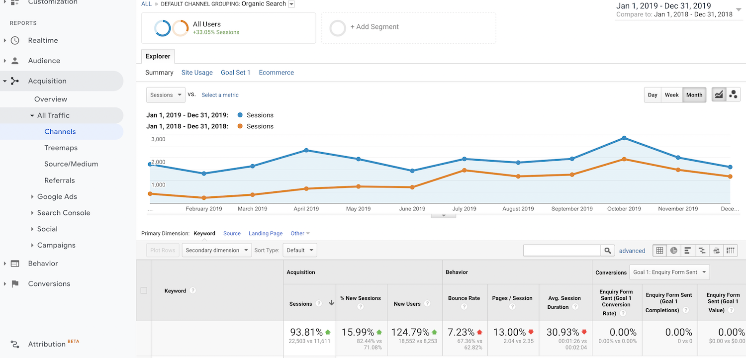 To gain an edge on their competition, they came to us. Since the start of our campaign we have helped them rank over 200 keywords on page 1 and we have helped increase their visibility in Google by 535.69%. They now receive over 50+ enquires on average each month.